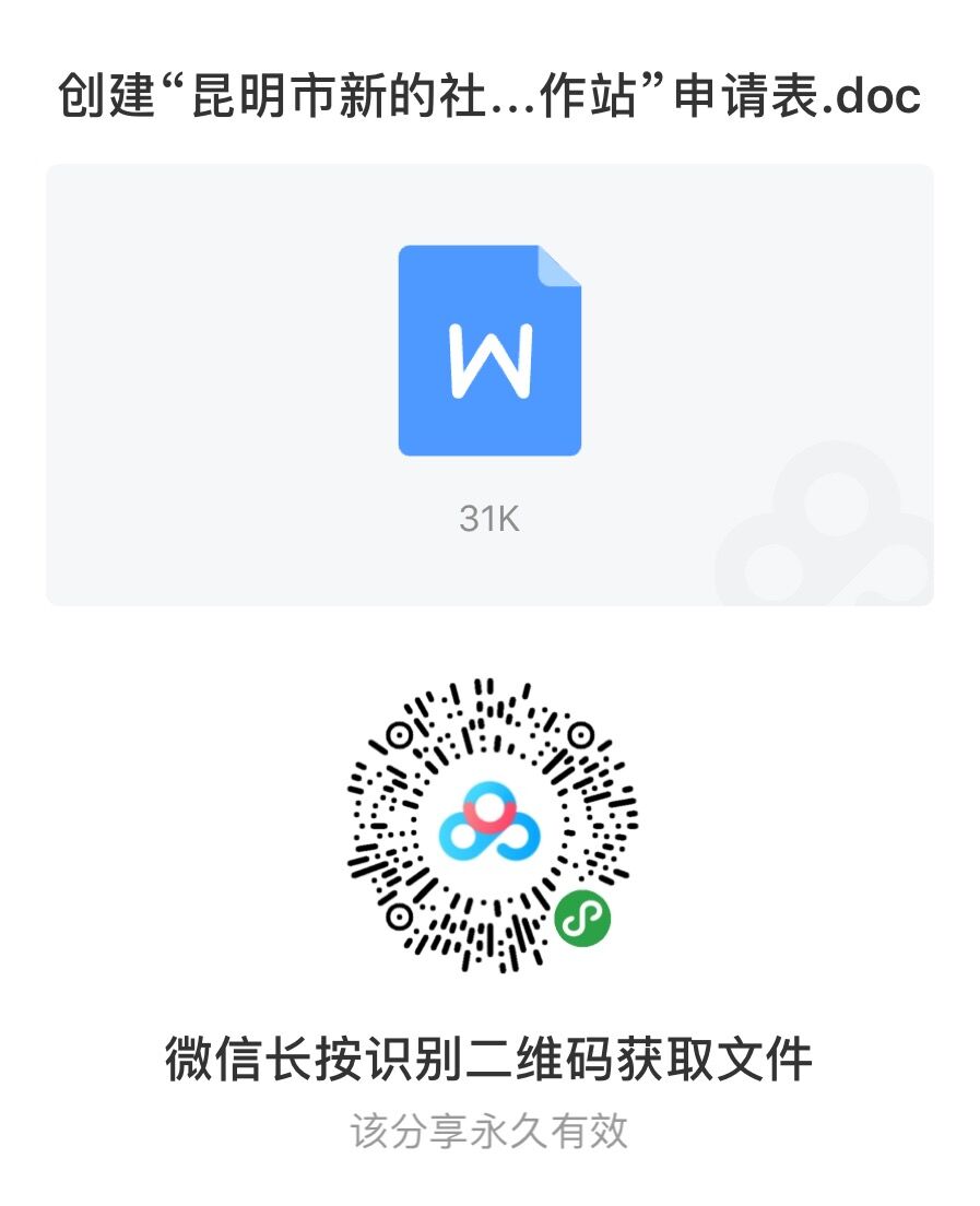 扫描下方二维码获取昆明市新的社会阶层人士工作站(联络点)申请表