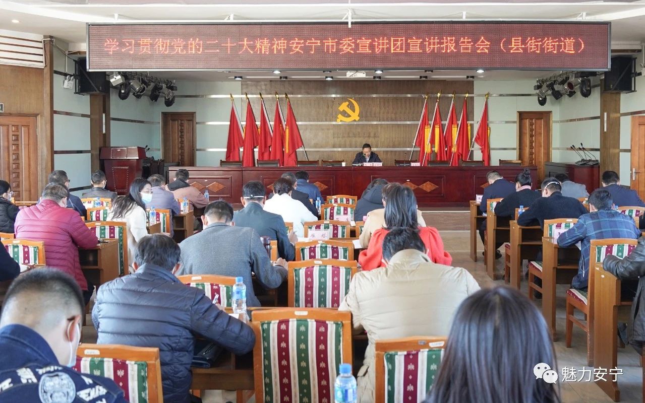 12月8日,学习贯彻党的二十大精神安宁市委宣讲团到县街街道进行宣讲。安宁市委宣讲团成员,市委常委、市委统战部部长张智作宣讲报告。
