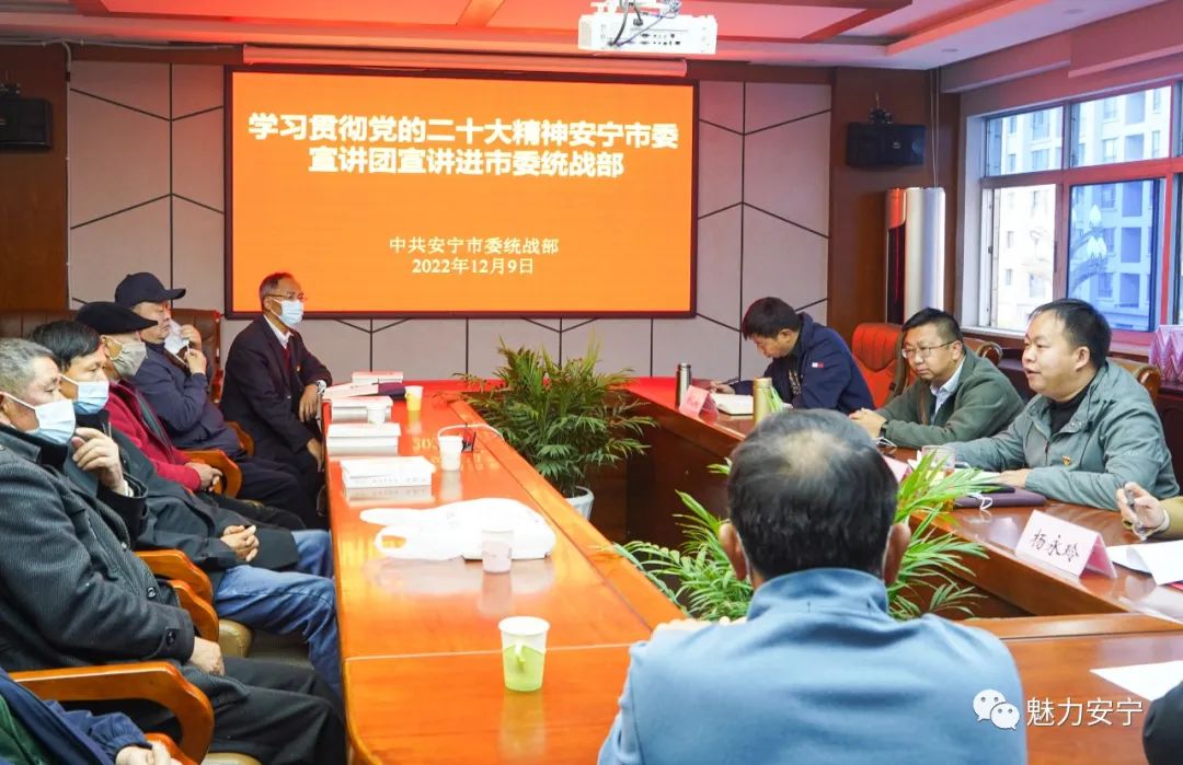 近日,学习贯彻党的二十大精神安宁市委宣讲团到安宁市委统战部进行宣讲。安宁市委宣讲团成员、市委统战部副部长李海静作宣讲。